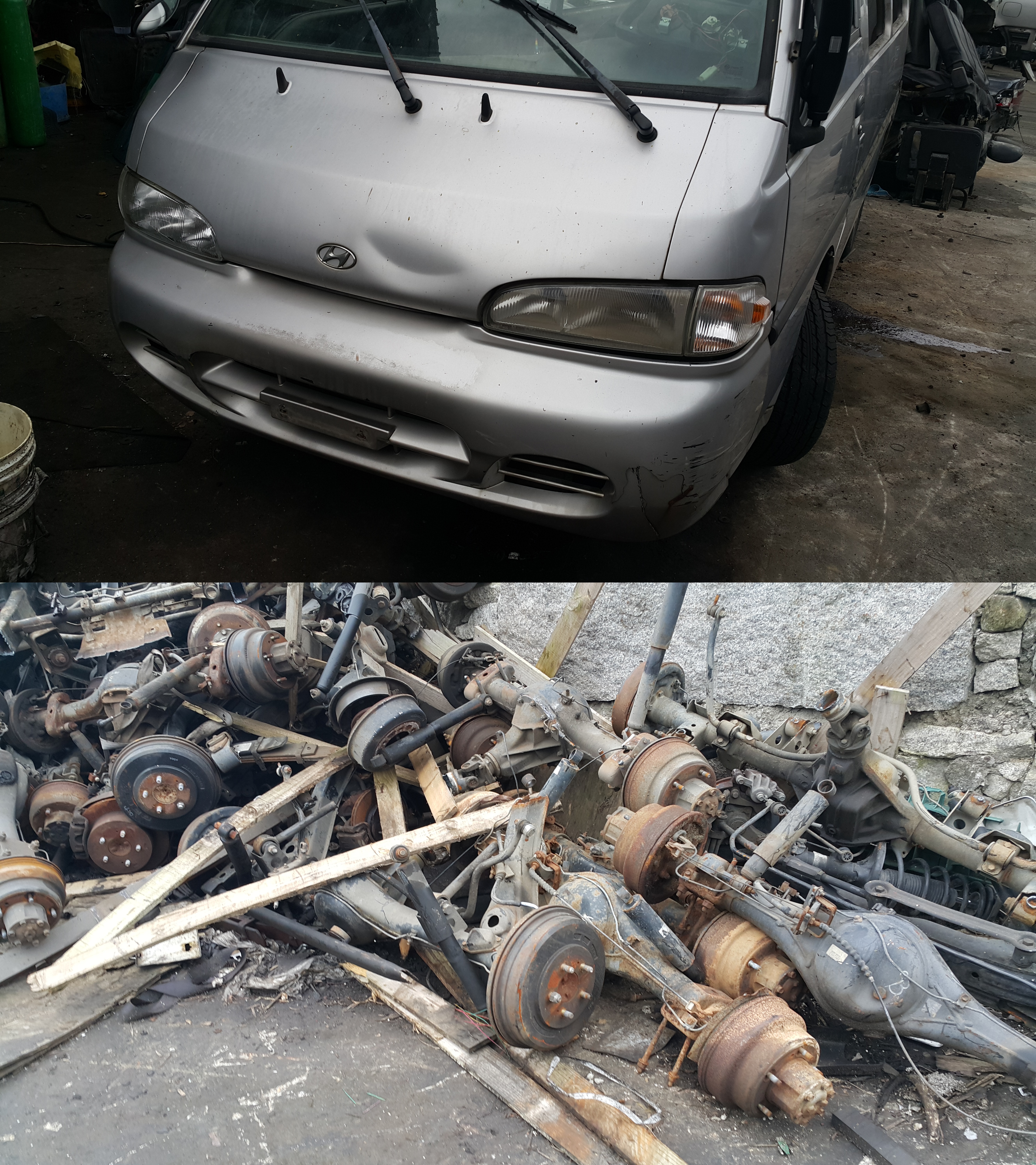 폐차장에 아벨라 자동차가 입고되면, 빠른 폐차를 위해서 동시에 작업합니다.