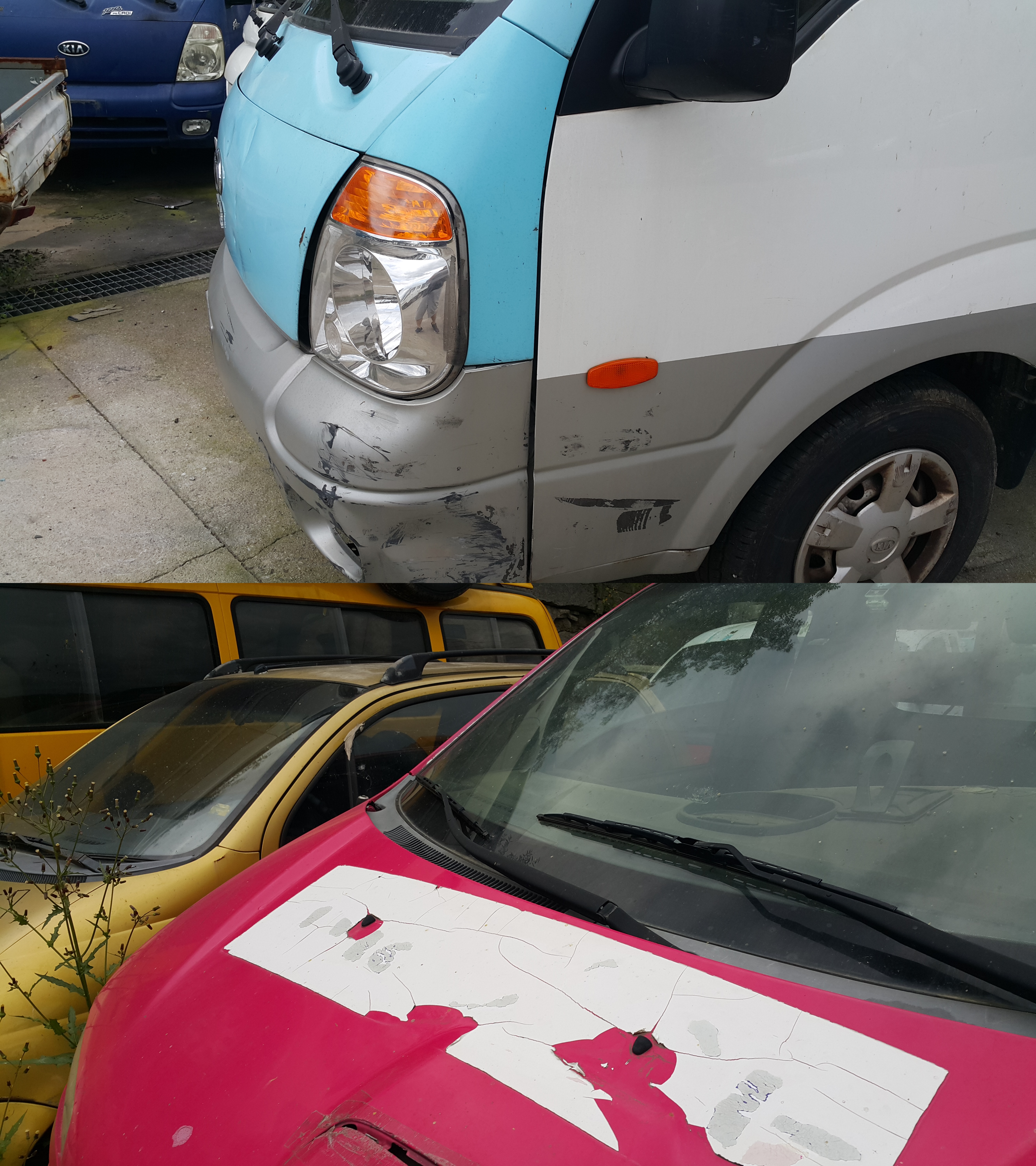 폐차장에 올뉴마티즈 자동차가 들어오면, 빠른 처리를 위해서 동시에 작업하게 됩니다.